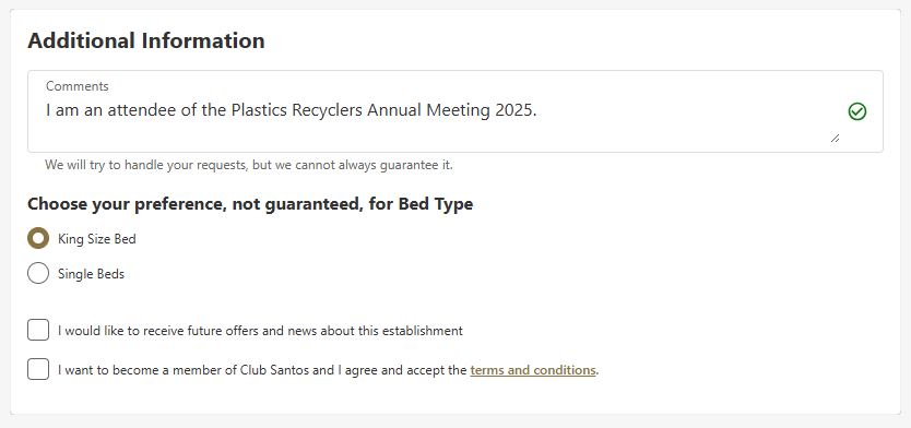 On that page, scroll to the 'Additional Information' box and indicate that you are an attendee of the Plastics Recyclers Annual Meeting. Please screenshot below.